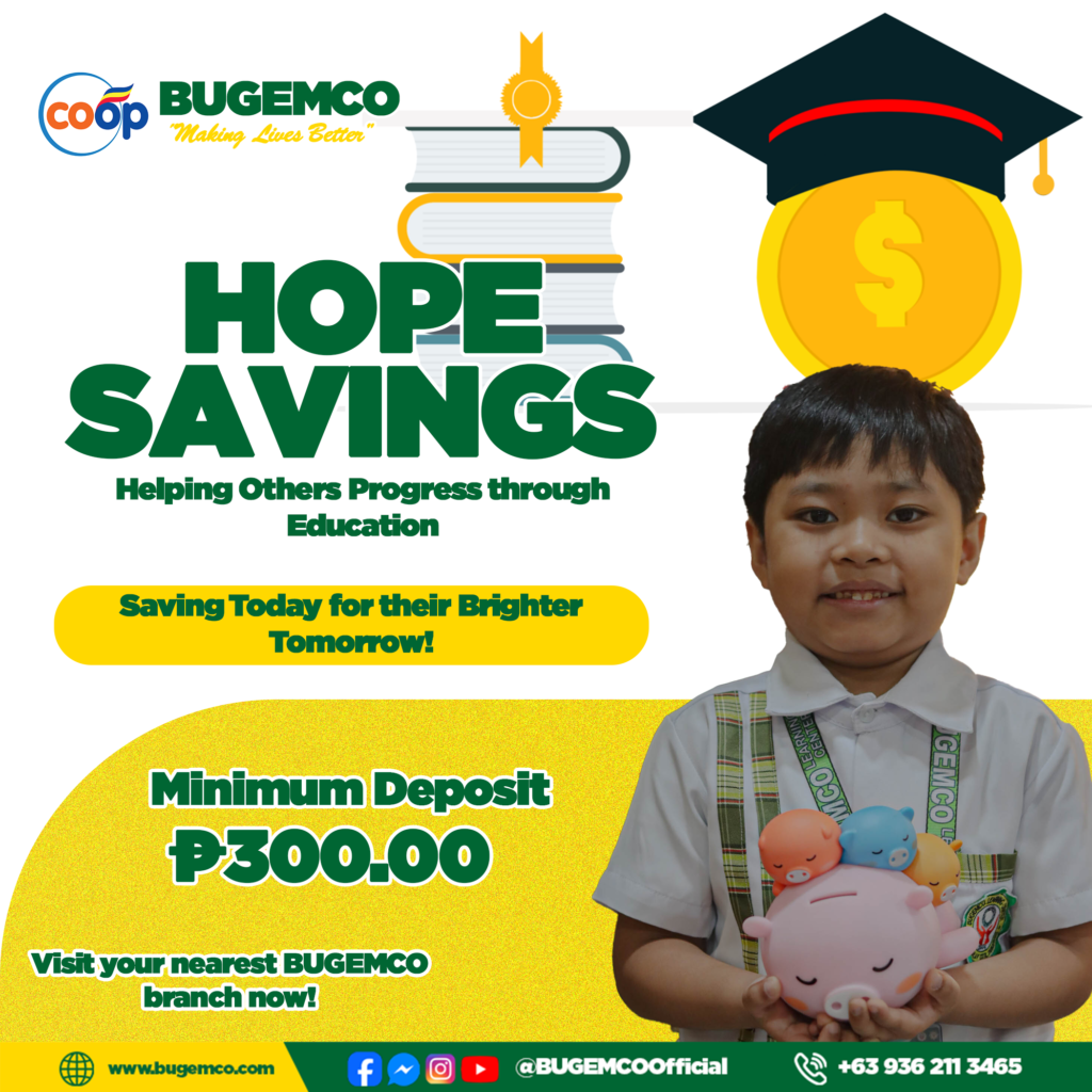 h.o.p.e savings- Minimum deposit ₱ 300.00/month