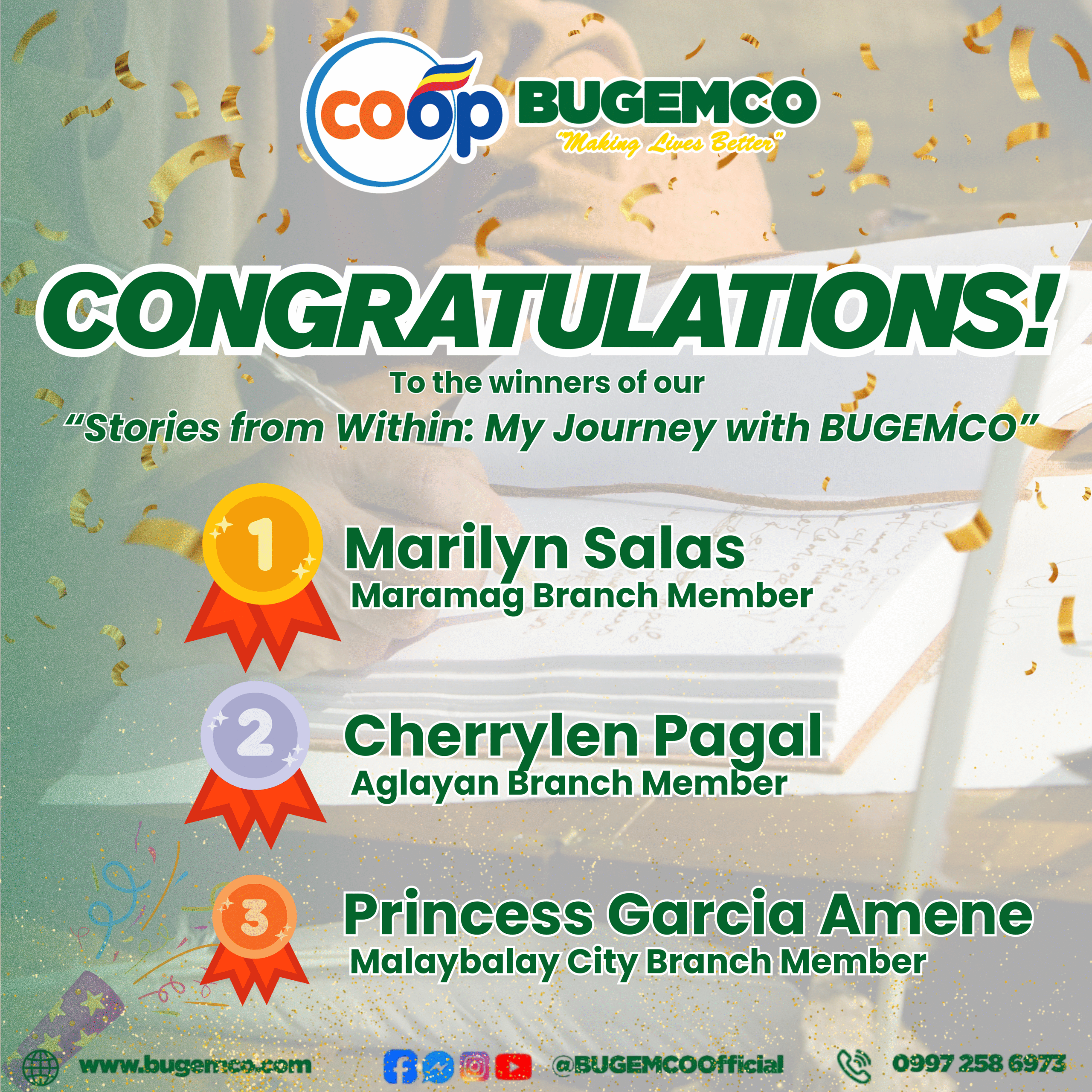 To our winners of “Stories from Within: My Journey with BUGEMCO,” your heartfelt stories truly inspired us and beautifully captured your journey as part of our cooperative family. 💚